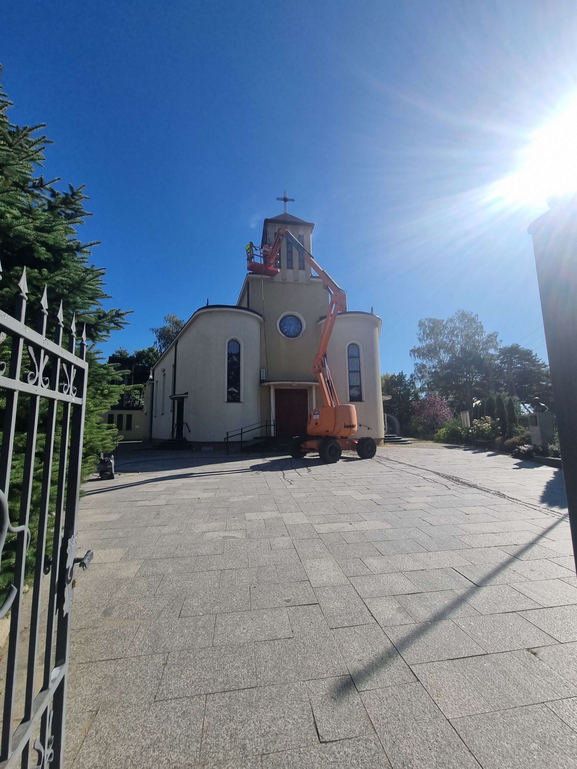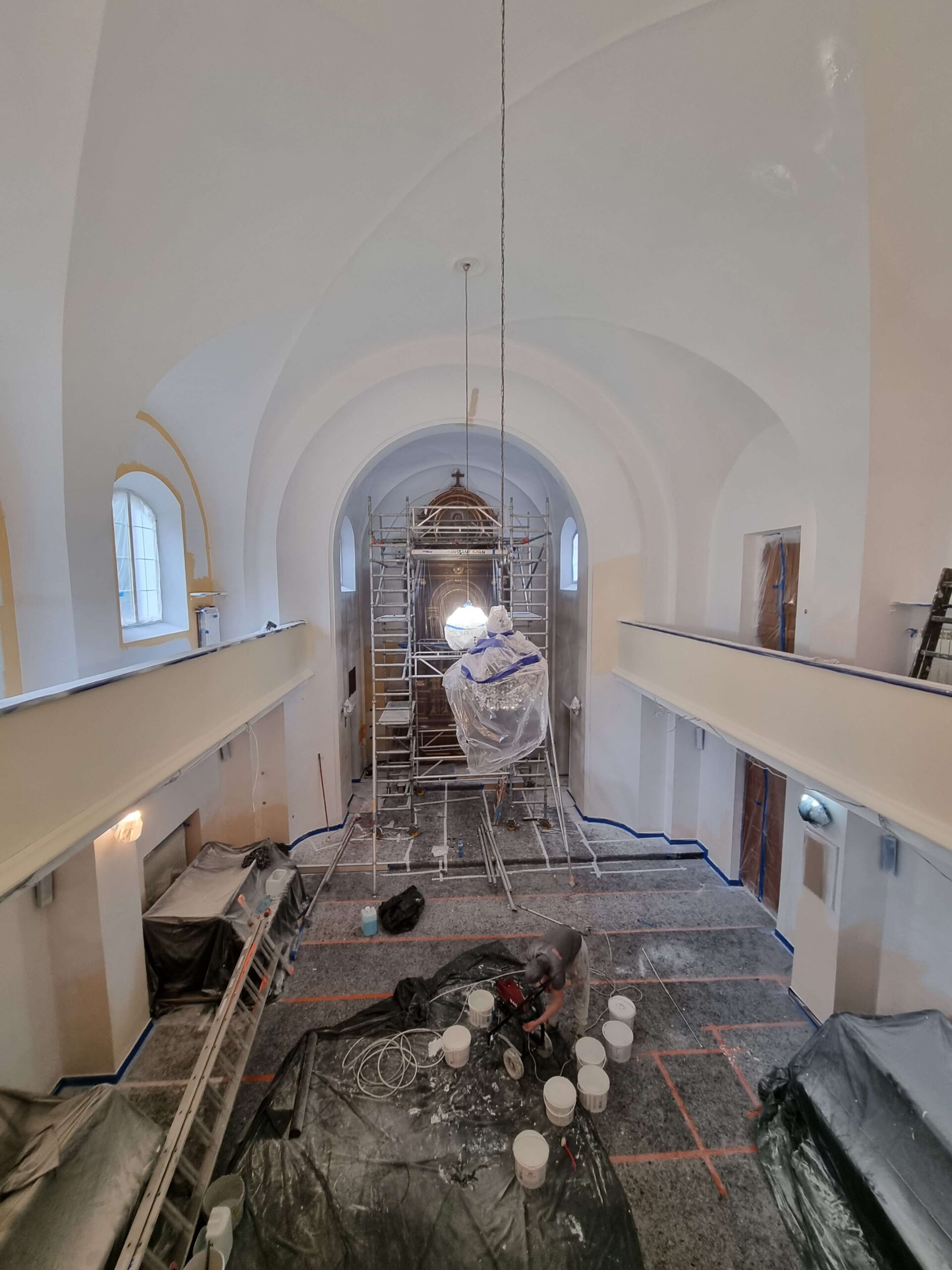 Zakres realizacji obejmował kompleksowe odnowienie ścian wewnętrznych, sufitów oraz elewacji Kościoła pw. Przemienienia Pańskiego, zlokalizowanego przy ul. Armii Krajowej 34 w Sulejówku-Miłośnie. Prace prowadzone były zarówno wewnątrz, jak i na zewnątrz budynku, przy zachowaniu wysokich standardów estetycznych oraz technologicznych, wymaganych w obiektach o charakterze sakralnym. Przed przystąpieniem do robót wykonano szczegółowe zabezpieczenie powierzchni oraz dzieł sztuki kościelnej, a następnie przeprowadzono czyszczenie powierzchni malarskich, gruntowanie i malowanie. Równolegle realizowane były prace elektryczne, zabudowy gipsowo-kartonowe, montaż parapetów oraz renowacja elementów dekoracyjnych, w tym liter oraz tzw. „oka Boga”. W ramach prac wykończeniowych wykonano również złocenia okien oraz głowic kolumn, a na kolumnach zastosowano stiuk ozdobny imitujący kamień, podkreślający historyczny i reprezentacyjny charakter wnętrza. Dodatkowo wszystkie ściany zostały zabezpieczone bezbarwną powłoką ochronną, rekomendowaną do obiektów o podwyższonych wymaganiach trwałości i odporności na zabrudzenia. Realizacja wymagała precyzyjnej koordynacji prac, doświadczenia w pracy na obiektach zabytkowych oraz szczególnej dbałości o detale, estetykę i trwałość zastosowanych rozwiązań. Inwestor: Parafia Rzymskokatolicka Przemienienia Pańskiego w Sulejówku-Miłośnie Lokalizacja: Sulejówek – Miłosna